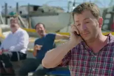Sur le chantier du bateau qu'ils ont gagné à la tombola et qu'ils rénovent, Franck, Rochat et Jérôme découvrent une bouteille de vieux rhum qu'ils dégustent ensemble. Après une cuite, le père de Kévin est au téléphone avec Laetitia. Derrière le portable, Franck dit : « Je t'aime ». Jérôme lui indique que ses collègues s'amusent à faire des blagues. Il lui fait ensuite croire qu'ils travaillent dur. Sa femme s'étonne du bruit. Son mari lui ment : « C'est Franck. Il veut la ponceuse ». La mère de Kévin l'interroge pour savoir à quelle heure il va rentrer. Rochat et Franck hurlent : « Tard ». Jérôme tente de trouver une excuse : « Il y a un gros morceau à finir. A ce soir chérie. Bisou ». Quand il raccroche, Rochat rigole et Franck n'hésite pas à l'embrasser sur la bouche !