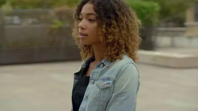 Aujourd'hui pour retrouver César au parc, elle porte une chemise en jean Levis et un pantalon Pull&bear, avec ses boucles d'oreilles Un jour mon Prince et un sac Paul Marius. Plus tard dans la soirée, elle se change pour mettre une robe noire Tara Jarmon sous un blouson en jean Le temps des cerises, avec un sac Issi Ba.