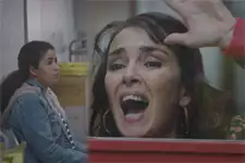 La fille d’Anémone insiste : « Mais j’ai des proches là -dedans. J’ai une équipe à soutenir ». L’agent de la sécurité est catégorique : « Aucune exception. Vous le savez bien, le Préfet a dû vous le dire ». Jeanne frappe sur la vitre : « Mila regarde-moi c’est Jeanne, tu m’entends ? ». L’homme la repousse : « Madame ne faites pas ça. Vous ne pouvez pas rester là ». Jeanne explose : « Bon écoutez laissez moi passer ! D’accord ? Vous avez qu’à me laisser à l’intérieur ! C’est pas grave ! ». L’homme la prévient : « Madame je vais être obligé de vous faire arrêter si vous continuez ! ». La fille d’Anémone poursuit : « Mila ! Mila ! C’est Jeanne ! ».