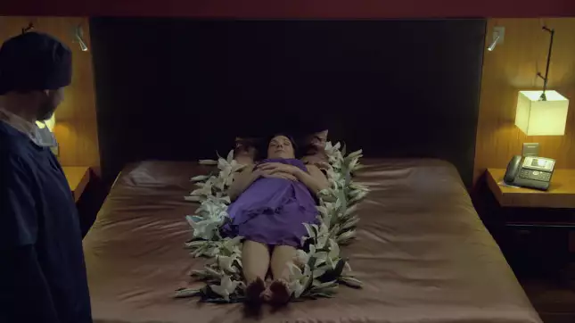 Dès lors, commence le macabre manège de Nicolas : la mise en place de la scène de meurtre. Après avoir piqué de sa seringue Anémone, il l'habille de la fameuse robe violette, lui vernit les ongles, et alors qu'il s'apprête à la tuer, il a soudain une vision ! Au lieu de voir Anémone devant lui, il voit Blanche à sa place. Cela vient perturber son processus de meurtre