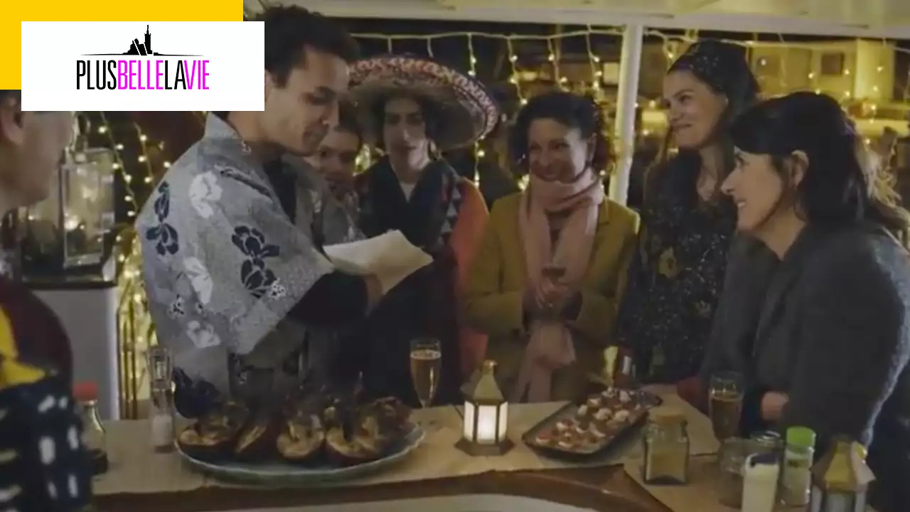 Capture d'écran/FTVAttention, les paragraphes qui suivent contiennent des spoilers sur l'épisode de Plus belle la vie diffusé demain soir sur France 3 !Plus belle la vieSortie le30 août 2004|26 minSérie :Plus belle la vieAvecMichel Cordes,Michel Cordes,Sylvie Flepp,Laëtitia Milot,Cécilia Hornus Spectateurs 1,3Voir sur SaltoBastien et Luna pris en flagrant délitAlors que Mirta discute avec Carmen et Fanny de son soulagement concernant la vente du Celeste, Luna n’arrête pas de penser à Bastien. Ce dernier pense également à elle, tandis qu’Elodie et Hugo font la liste des courses pour le réveillon.Le soir, Mirta et Luna se mettent sur leur 31. Cette dernière se rend compte qu’elle a oublié sa canne, tout simplement parce qu’elle n’en a plus besoin pour marcher. Sa mère se réjouit de ce miracle. Luna et Mirta arrivent au bateau des Castel. En montant à bord, elles font la rencontre des deux autres enfants de Bastien et Elodie : Sunalee et Pablo. Quant à Akira, elle est absente de la fête car elle n’aime pas Noël. Au moment de l’échange des cadeaux, Luna offre à la famille Castel la promesse de vente du Celeste. En retour, ils leur offre des bijoux.Plus tard, Bastien et Luna, qui n’ont pas arrêté de se lancer des regards durant le réveillon, se retrouvent au théâtre en plein air.