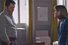 Chez les Belesta, Jérôme dit à Laetitia : « Tom se repose ». Elle réplique : « Ça va pas ? ». Il annonce : « Il dit que si mais il préfère dormir ». Sa femme demande : « T'as pris sa température ? ». Son mari confirme : « Ça n'a pas bougé. 36,8 ». Laetitia lâche : « Bon bah il mange pas ». Jérôme confie : « Il n'a pas faim ». Sa femme lui rappelle : « Pourtant il a mangé des croissants tout à l'heure ». Jérôme balance : « Je ne sais pas moi. Il est peut-être détraqué à cause des médicaments ». Laetitia est vraiment flippée : « Ou alors pire, il fait une rechute ». Jérôme indique : « Il allait mieux ce matin ». Sa femme poursuit : « Il allait surtout mieux qu'hier parce que hier c'était quand même pas la grande forme ». Son mari la questionne : « Pourquoi ils l'ont laissé sortir alors ? ». Laetitia est énervée : « Je me pose la question et j'ai peur d'avoir la réponse ». Jérôme tente de la calmer : « Je sais que t'as croisé la femme de Nebout et c'est sa fille qui s'est occupée de Tom.