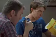 A l'heure du petit déjeuner, Kévin reproche à son père d'avoir pris dans son épicerie sociale des céréales dont la date de péremption a été dépasée. Il trouve qu'elles ne sont pas bonnes du tout ! Jérôme dit que c'était ça ou rien. Il n'a pas d'argent pour faire les courses au supermarché. L'adolescent préfère ne pas manger. Il demande ensuite 10 euros à son père pour se payer le bus afin d'aller voir Jenny au parloir après les cours. Jérôme n'a qu'un billet de 5 euros à lui donner... Au Lycée Vincent Scotto, Coralie reproche à Kévin d'arriver bien en retard à son cours. L'adolescent s'excuse en disant qu'il était aux toilettes. Tout le monde se moque de lui. La prof de maths lui remet la copie de son contrôle. Il a d'ailleurs eu 4/20 ! Coralie n'arrête pas de le « casser ». Le fils de Laetitia et Jérôme n'aime pas du tout son humour... Il insulte la prof de maths et la traite de « bouffonne » devant ses autres camarades. Enervée, elle le vire chez Rochat ! Face au proviseur de